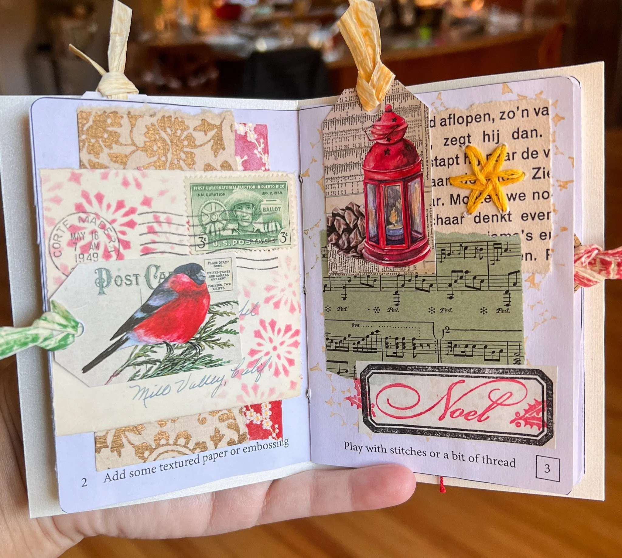 We’ll be creating a small gluebook and filling it with 12-prompt centric collages, all in a Christmas theme.