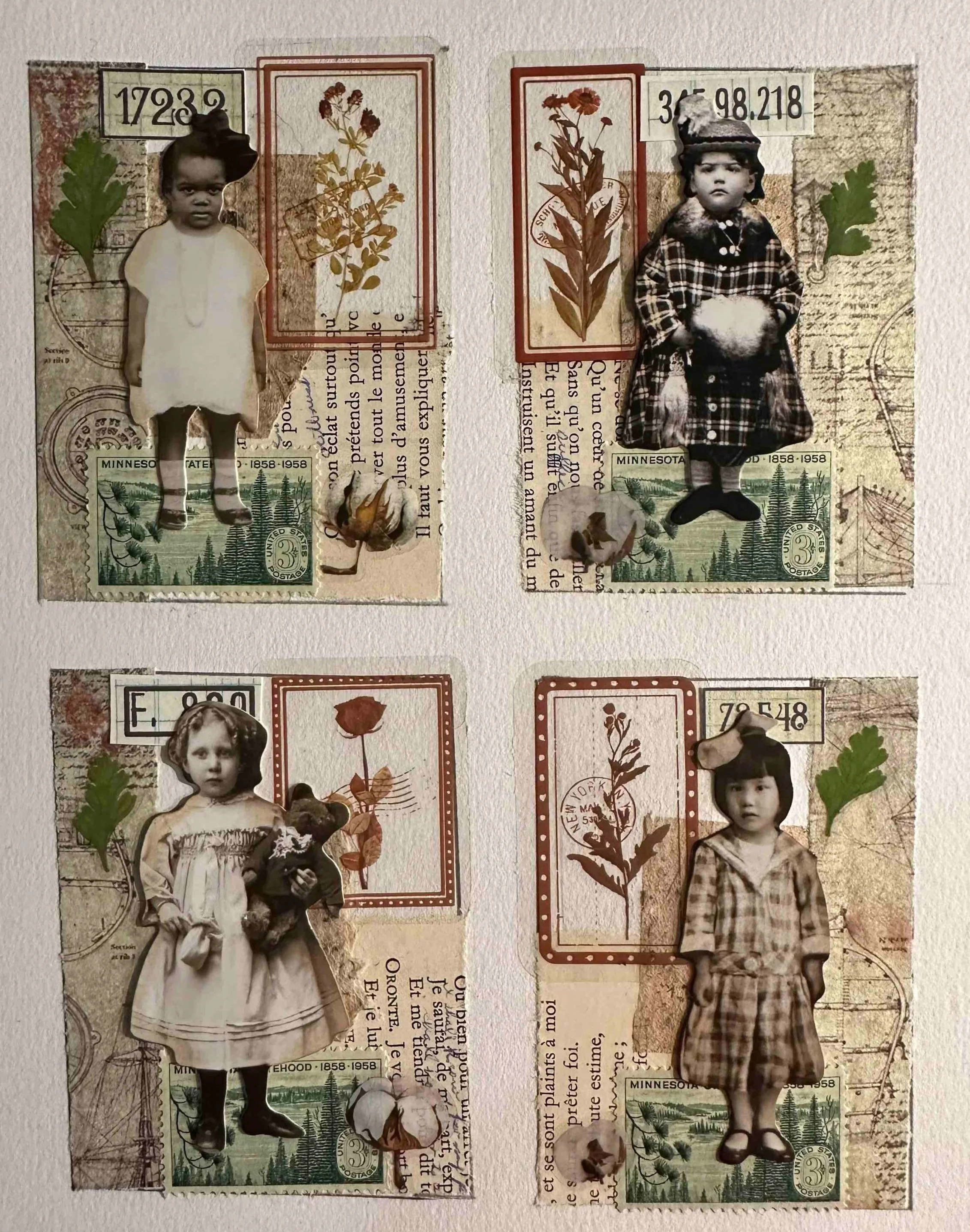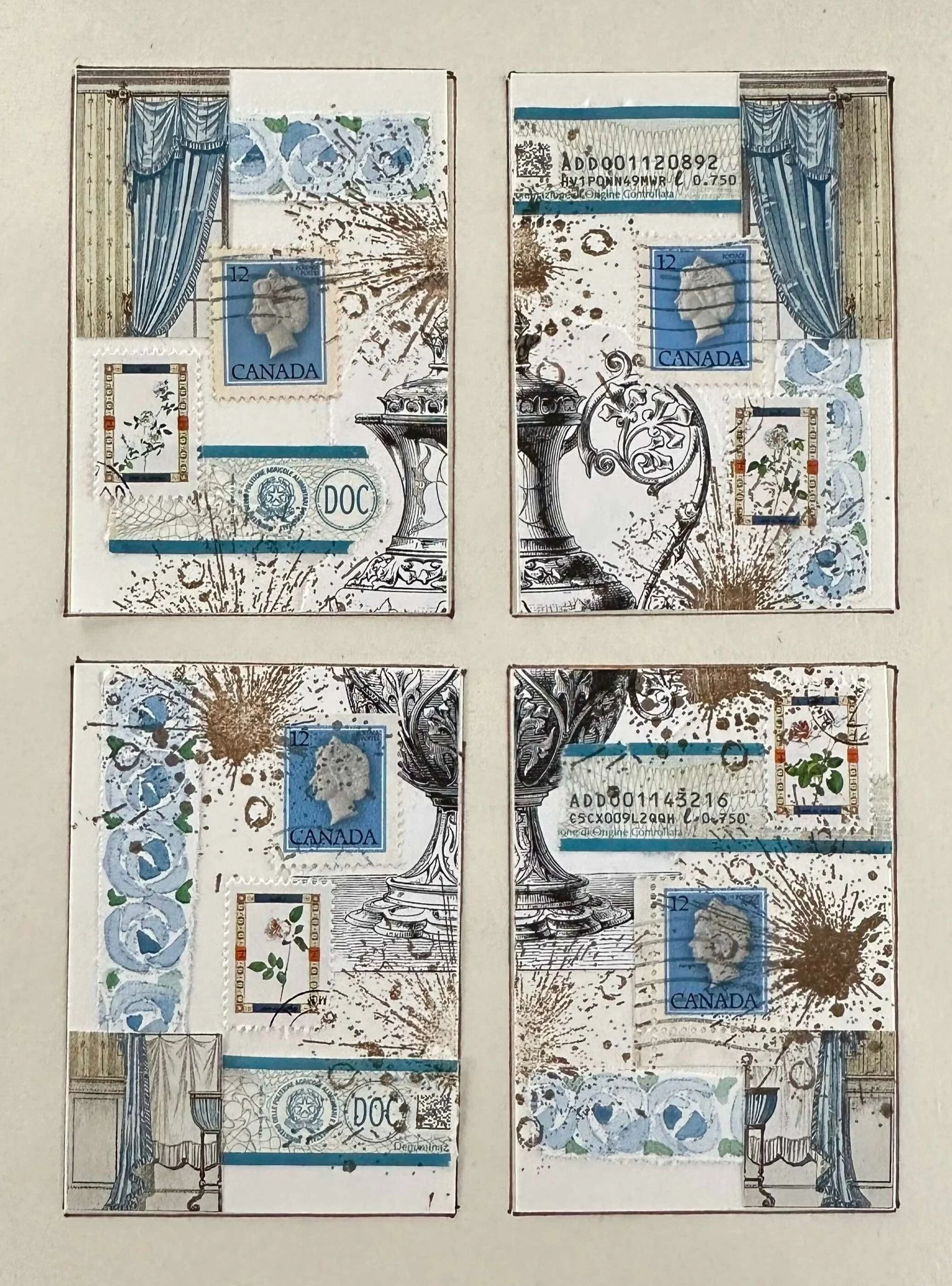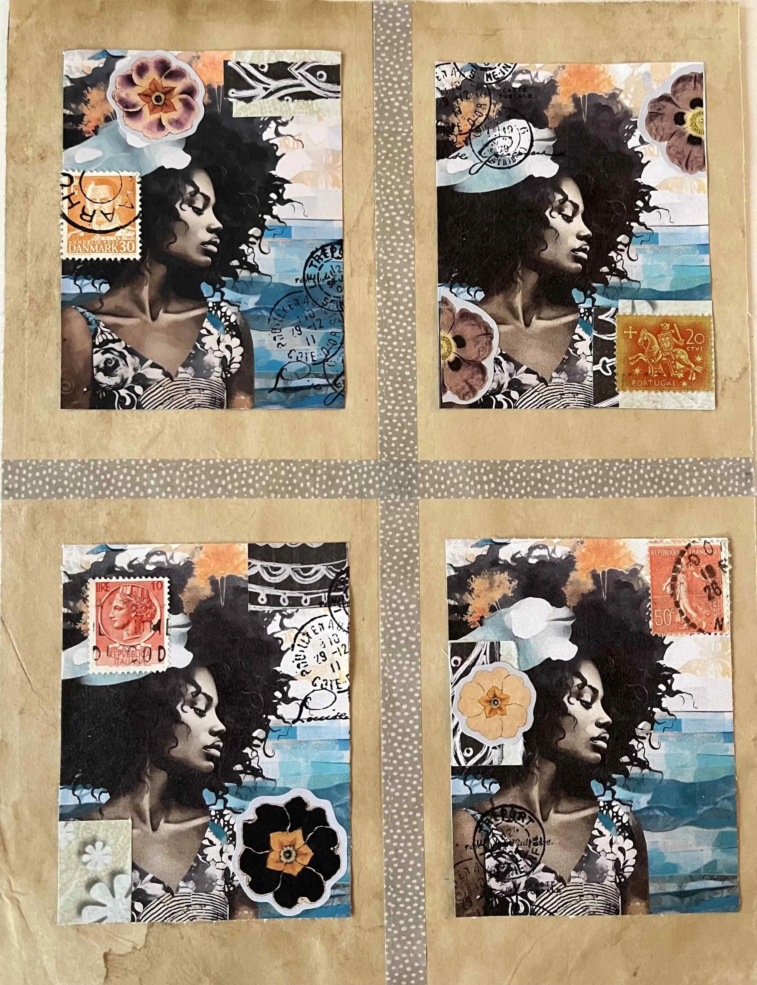 Looking over these four collages, do you notice how there are the same elements in each collage, done in four different ways? Isn’t that so interesting?! How did she come up with four distinct collages? How can this be deconstructed, learned from, and recreated? I decided to share this with those in my membership to see if we could recreate the exercise.