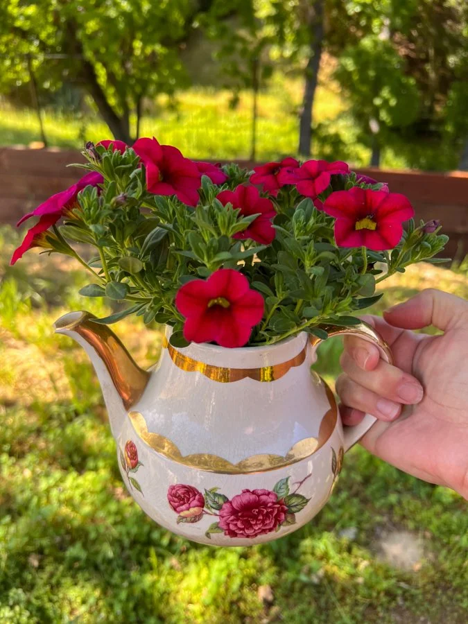 For example, there's the more straightforward reuse containers, like looking in a second-hand shop for something nice to grow your flowers.